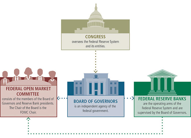 What emerged was the Federal Reserve Act of 1913. Eight to twelve regional Reserve Banks, each with its own board of directors drawn from banking and business. A Federal Reserve Board in Washington composed entirely of presidential appointees to provide oversight. A Federal Advisory Council of twelve bankers elected by regional banks to voice industry concerns.